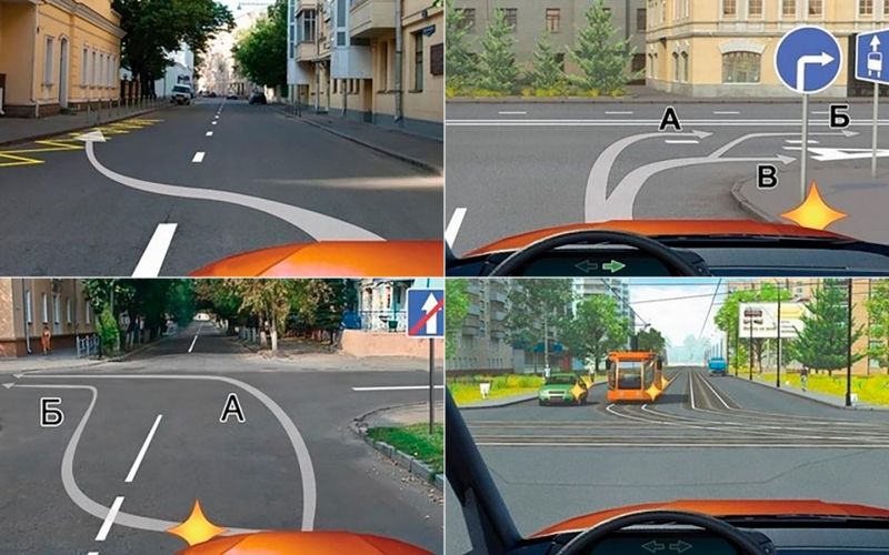 «Но по картинке создается впечатление, что траектория Б — это поворот сразу во вторую полосу. Это несуразность прорисовки траектории в данном билете. Б — это поворот на выделенную полосу с дальнейшим перестроением в левую полосу», — добавляет эксперт.